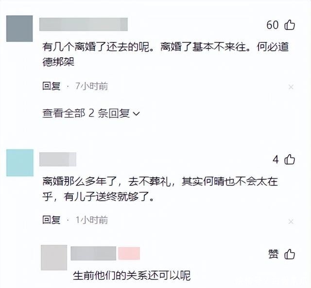 不过,也有网友持有反对意见,认为都离婚那么多年了,去不葬礼,其实何晴也不会太在乎,有儿子送终就够了。