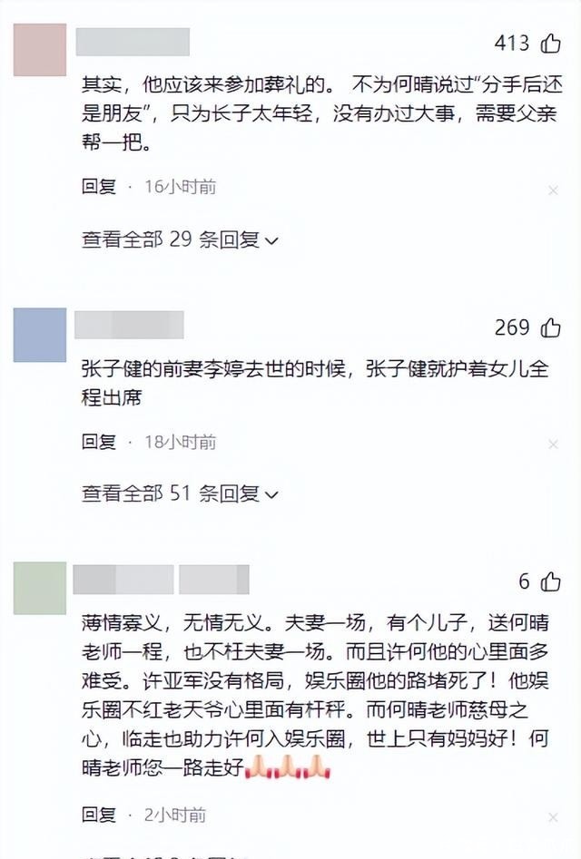 这组照片曝光之后,网友彻底炸锅了,不少人称何晴是红颜薄命,许亚军冷血无情,竟然连前妻的最后一面都不愿见。
